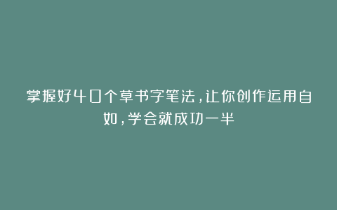 掌握好40个草书字笔法,让你创作运用自如,学会就成功一半