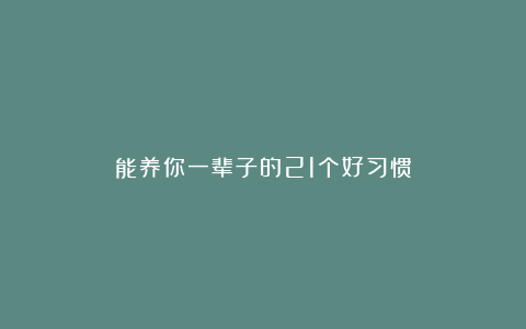能养你一辈子的21个好习惯