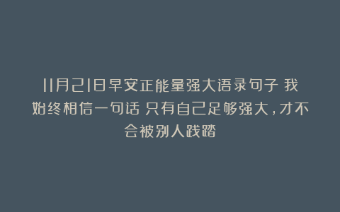 10月24日早安正能量人生百味句子:生活就是这样,别人只看结果,自己独撑过程。面对生活,我们除了坚强,就是继续,别无选择!