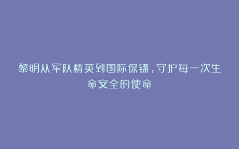 黎明从军队精英到国际保镖,守护每一次生命安全的使命