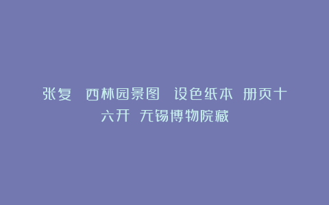 1年前张复(1546—1630),字元春,号苓石,江苏太仓人。山水师从钱榖,兼得五代北方山水画派荆浩、关仝,南宋画派马远、夏珪,元代黄公望以及明代沈周意味,为吴门画派后期的健将之一。王世贞称张复为“小友”, …