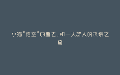 小猫“悟空”的逝去,和一大群人的丧亲之痛