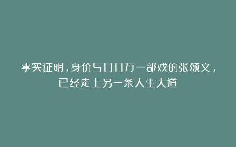 事实证明,身价500万一部戏的张颂文,已经走上另一条人生大道