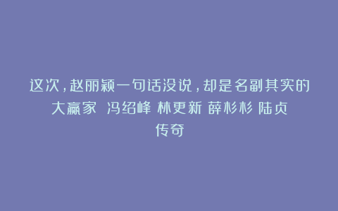 赵丽颖绯闻男友曝光:真正的大女主早就对爱情祛魅了