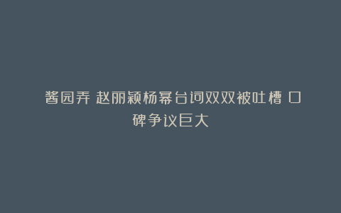 《酱园弄》赵丽颖杨幂台词双双被吐槽!口碑争议巨大