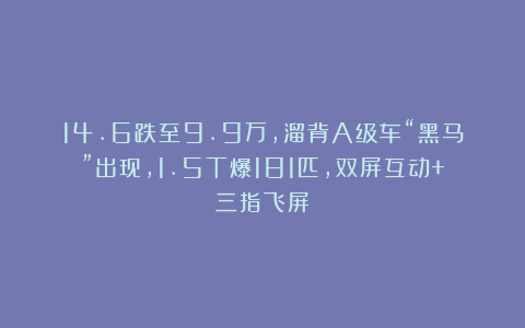 14.6跌至9.9万,溜背A级车“黑马”出现,1.5T爆181匹,双屏互动+三指飞屏