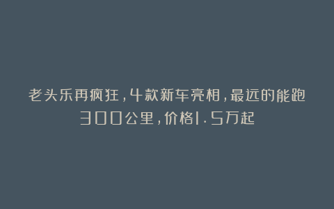 老头乐再疯狂,4款新车亮相,最远的能跑300公里,价格1.5万起!