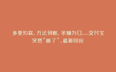 多重扣款、无法到账、余额为0……支付宝突然“崩了”,最新回应!