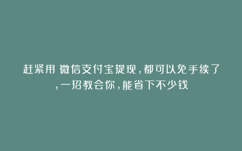 赶紧用!微信支付宝提现,都可以免手续了,一招教会你,能省下不少钱!