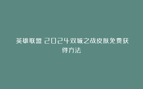 《英雄联盟》2024双城之战皮肤免费获得方法