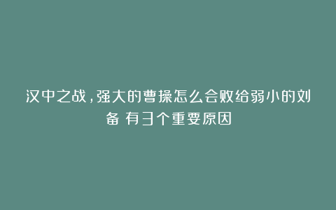 汉中之战,强大的曹操怎么会败给弱小的刘备?有3个重要原因