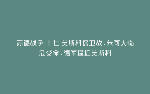 苏德战争(十七)莫斯科保卫战.朱可夫临危受命.德军逼近莫斯科