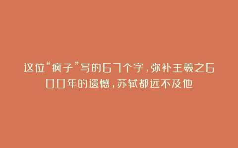 这位“疯子”写的67个字,弥补王羲之600年的遗憾,苏轼都远不及他!