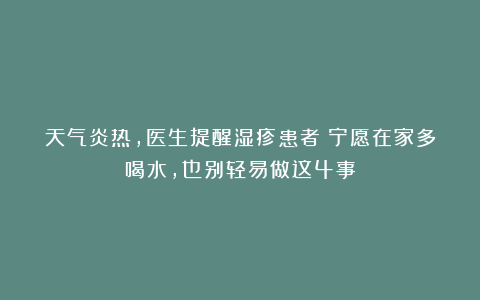 医生提醒过她:湿疹在炎热的夏季往往会加重,但要特别小心一些常见的错误做法,尤其是在天气炎热时,湿疹患者的皮肤会更加敏感。