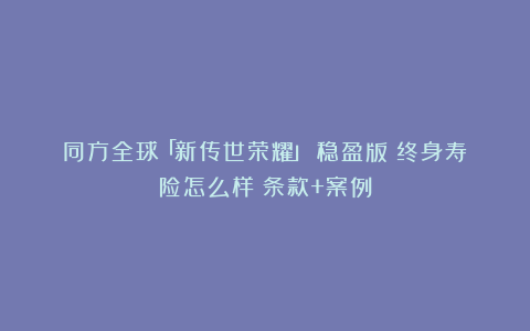 同方全球「新传世荣耀」(稳盈版)终身寿险怎么样?条款+案例