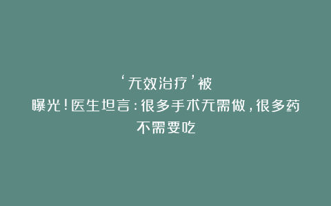 在如今这个医疗逐渐商业化的时代,我们要保持清醒的头脑,不能盲目信任。要知道,最好的治疗,是让身体的自愈系统正常工作;最高明的手术刀,是让它安静地待在刀鞘里,不轻易出鞘。’