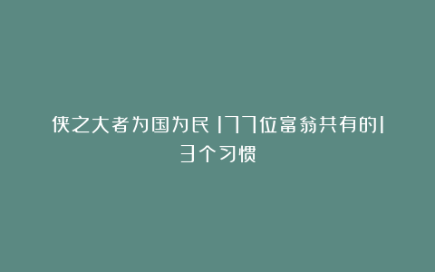 侠之大者为国为民:177位富翁共有的13个习惯 8个月前 #artContent h1{font-size:16px;font-weight: 400;} 标签:font侠之大者 上一篇文章谁在收购ST公司的控股权? 下一篇文章你的梦、烦恼和瘾都暗示了心灵有话对你说
