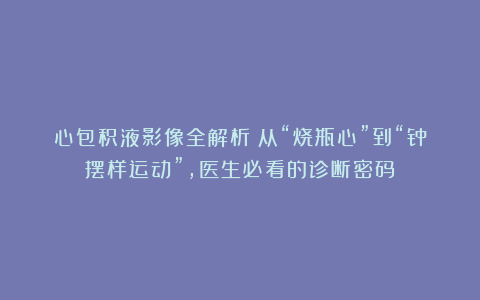 心包积液影像全解析:从“烧瓶心”到“钟摆样运动”,医生必看的诊断密码