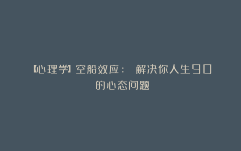 【心理学】空船效应: 解决你人生90%的心态问题 5个月前 标签:心理学空船 上一篇文章当年提拔我的贵人告诉我,一切痛苦,都是你不懂人性 下一篇文章动画《节气小精灵》亮相“5·19中国旅游日”青岛市活动启动仪式
