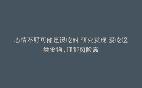 俗话说“病从口入”,饮食会影响我们的身体健康,但饮食会影响情绪吗?最近的一项研究发现,偏爱吃某类饮食,确实抑郁的风险会升高。