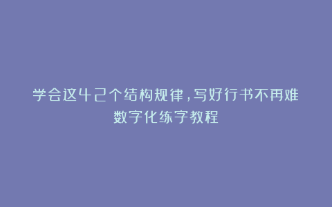 学会这42个结构规律,写好行书不再难(数字化练字教程)