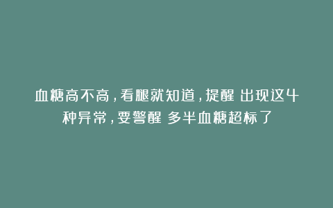 血糖高不高,看腿就知道,提醒:出现这4种异常,要警醒!多半血糖超标了 5个月前 每次想知道自己血糖咋样,赵斌峰都要专门跑趟医院。家里离镇卫生院要好远,早上排队、抽血、等报告,来回一趟得折腾大半天。 标签:看腿血糖赵斌峰 上一篇文章🇺🇸美国烹饪学院配方|60 给爱咖啡的你 下一篇文章赏草观花雀唱听