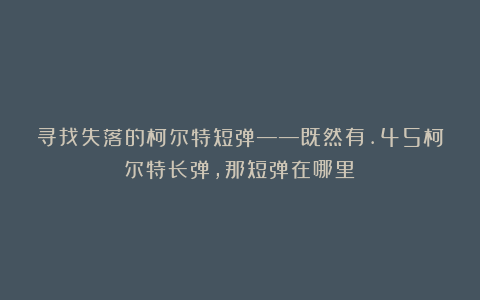 由此想来,既然.45柯尔特弹也叫.45柯尔特长弹,那在它之前就应该还有一个.45柯尔特短弹才对咯。