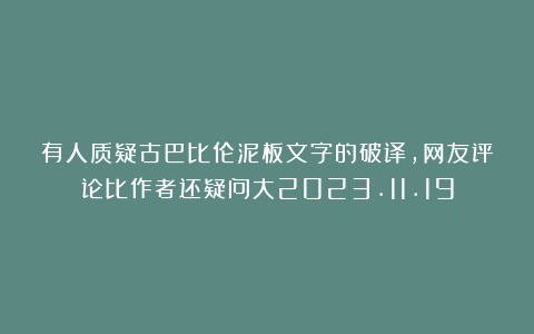 说实话本人也对这个泥板的翻译有疑问,这看起来毫无头绪,感觉连推理的苗头都没有。我们的甲骨文破译赏金那么高,至今还是难度重重,那这破译泥板的专家怎么不来破译甲骨文呢。我们网友的评论也是对此也是一致质疑细节。