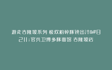 <官兵卫>,吉隆坡最近比较火的一家面馆。