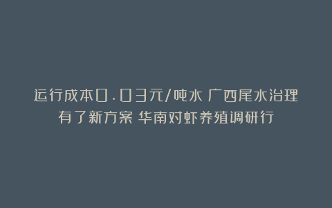 水产前沿:广西地区水产养殖尤其是对虾养殖的尾水治理的现状与存在问题。
