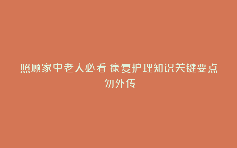 希望家属们通过掌握这些康复护理知识,能像给老人的康复之路铺上了一层厚厚的“幸福毛毯”,更好地照顾家中老人。衷心祝愿老人们能早日康复,每天都开开心心,安享幸福的晚年生活。您在照顾老人的过程中,有没有遇到什么特别的护理难题呢?不妨分享出来,大家一起想办法解决,让我们共同为老人的健康保驾护航。