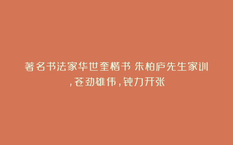 著名书法家华世奎楷书《朱柏庐先生家训》,苍劲雄伟,骨力开张
