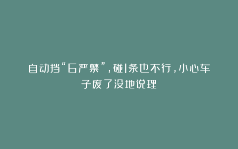 今天猫姐就给大家细说自动挡车最要命的6个操作禁区,这些坑都是用真金白银趟出来的教训。