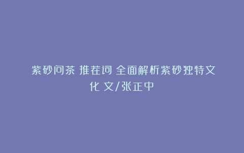 ” 全面解析紫砂独特文化 “